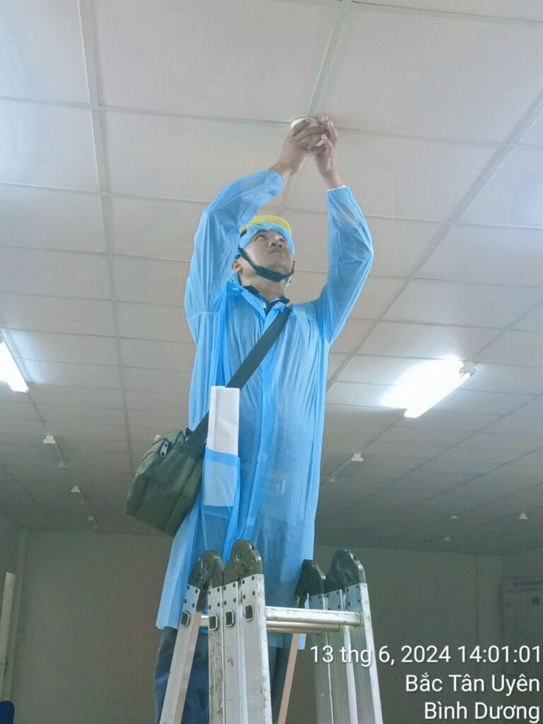 Kiểm tra tủ trung tâm, đầu báo khói, đầu báo nhiệt, nút nhấn khẩn, còi – đèn báo cháy.